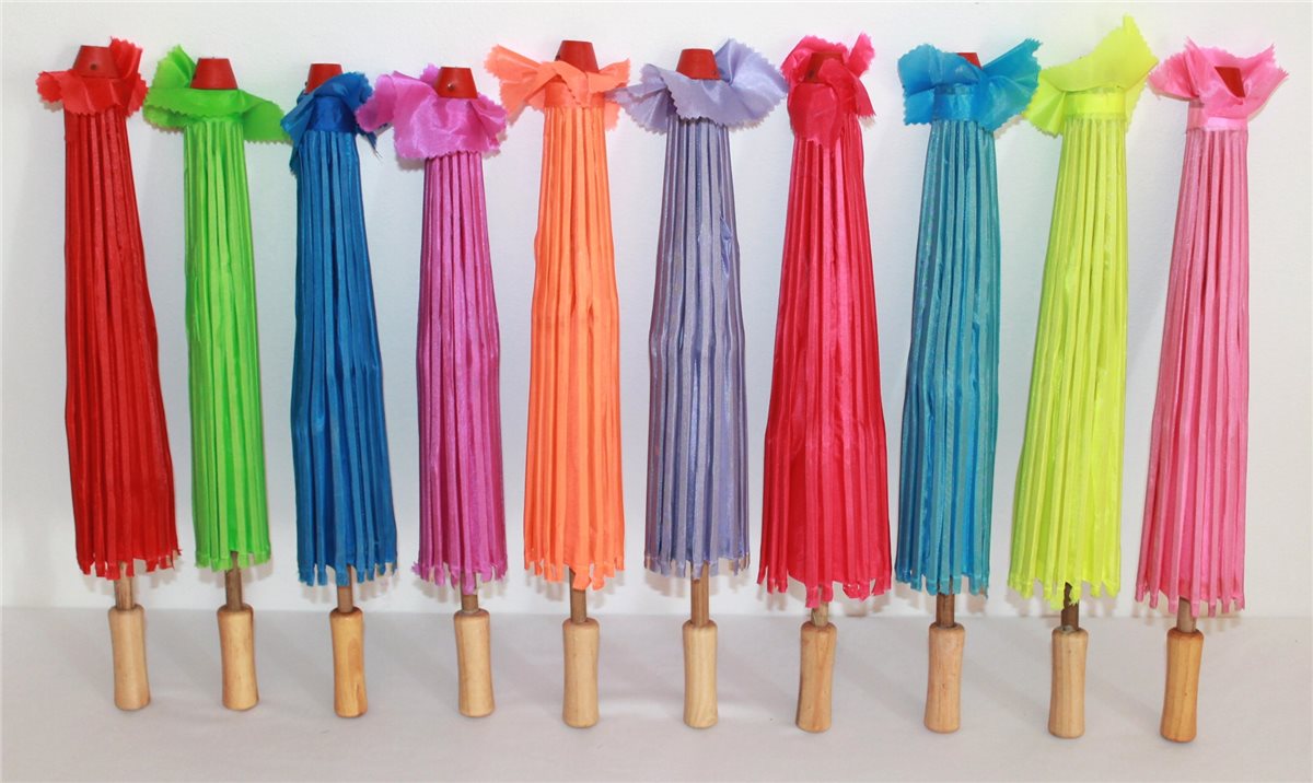 Sehr schöner Schirm aus Bambus mit Kunstfaserbespannung in transparentem violett