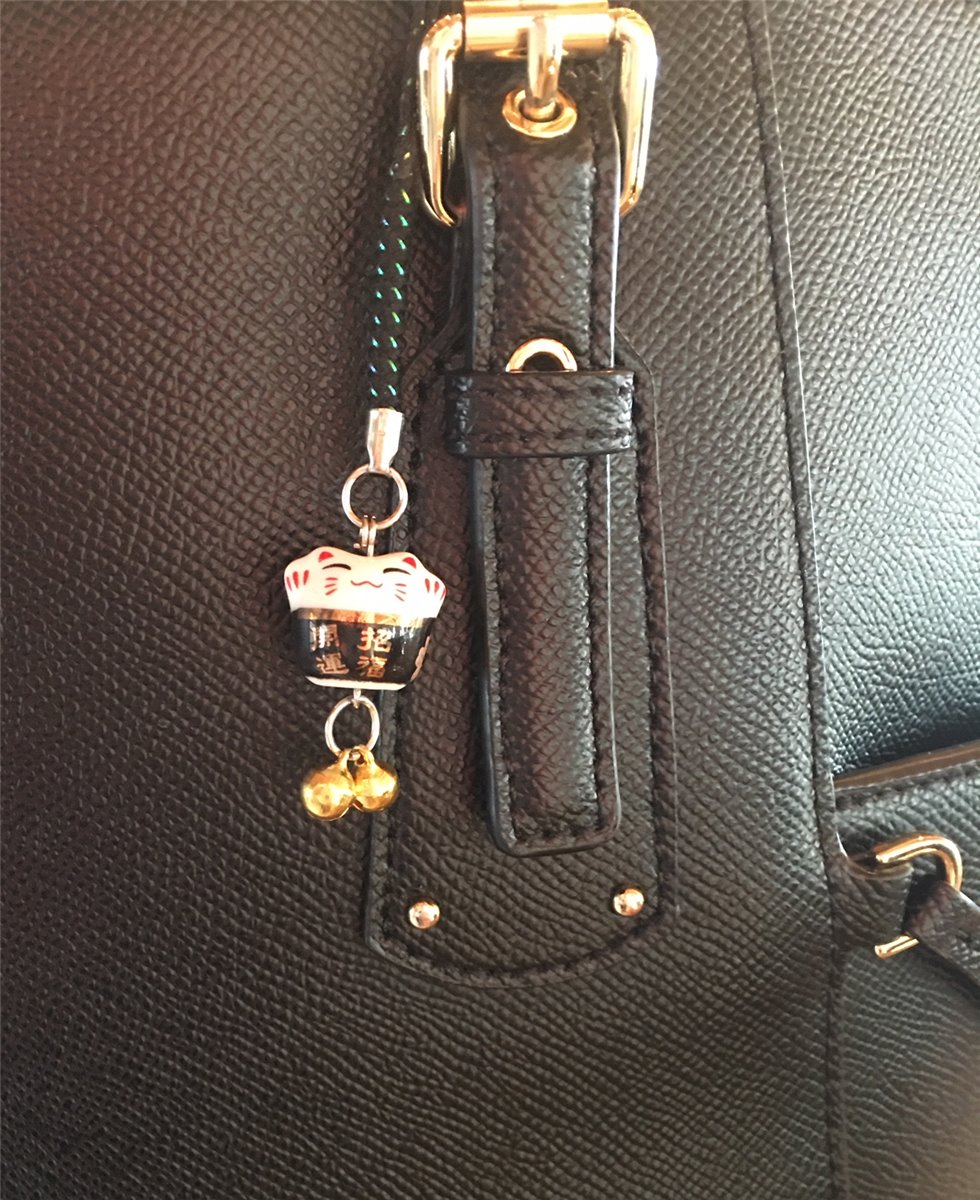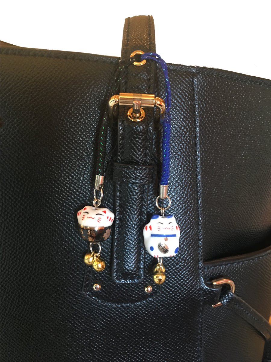 Liebevoll und aufwändig gearbeiteter Anhänger Motiv Glückskatze aus Keramik