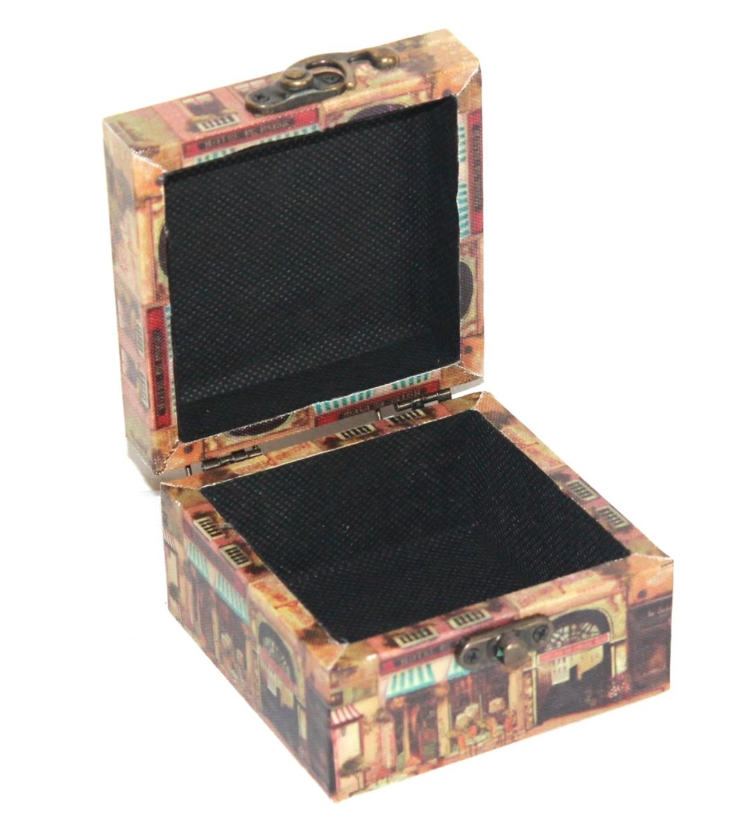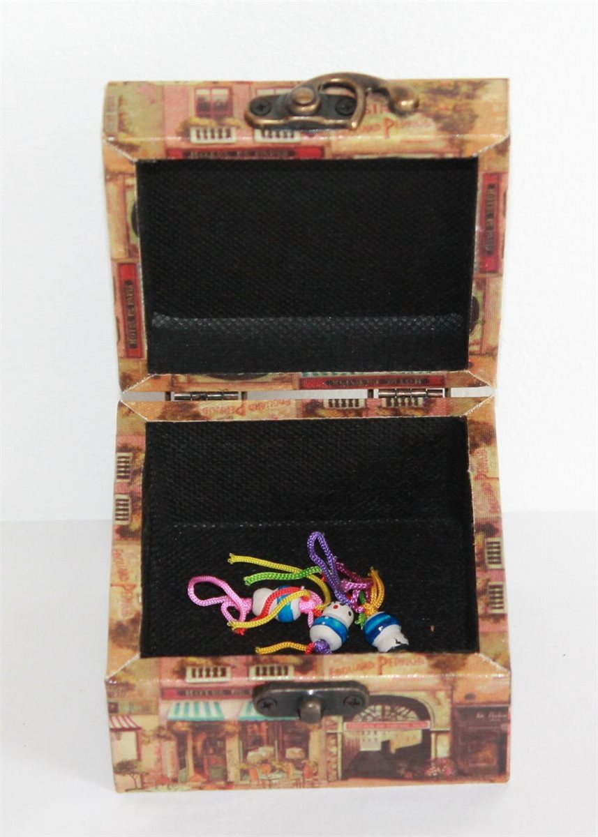 Kleine Box aus Holz im Motiv Caféhausstil.