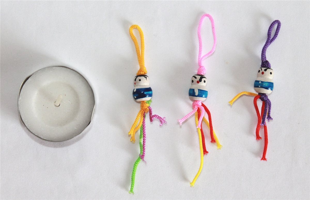 Mit 3 Glücks- oder Sorgenpüppchen aus Holz - zufällig sortiert