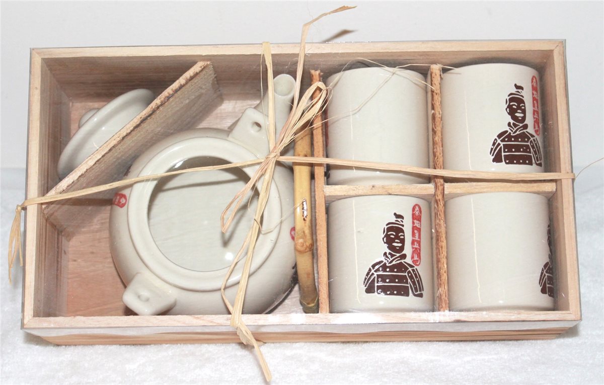 Ein Teeservice mit Motiven der bedeutendsten Ausgrabungsstätten der Welt, den Terrakotta Kriegern aus in Lintong